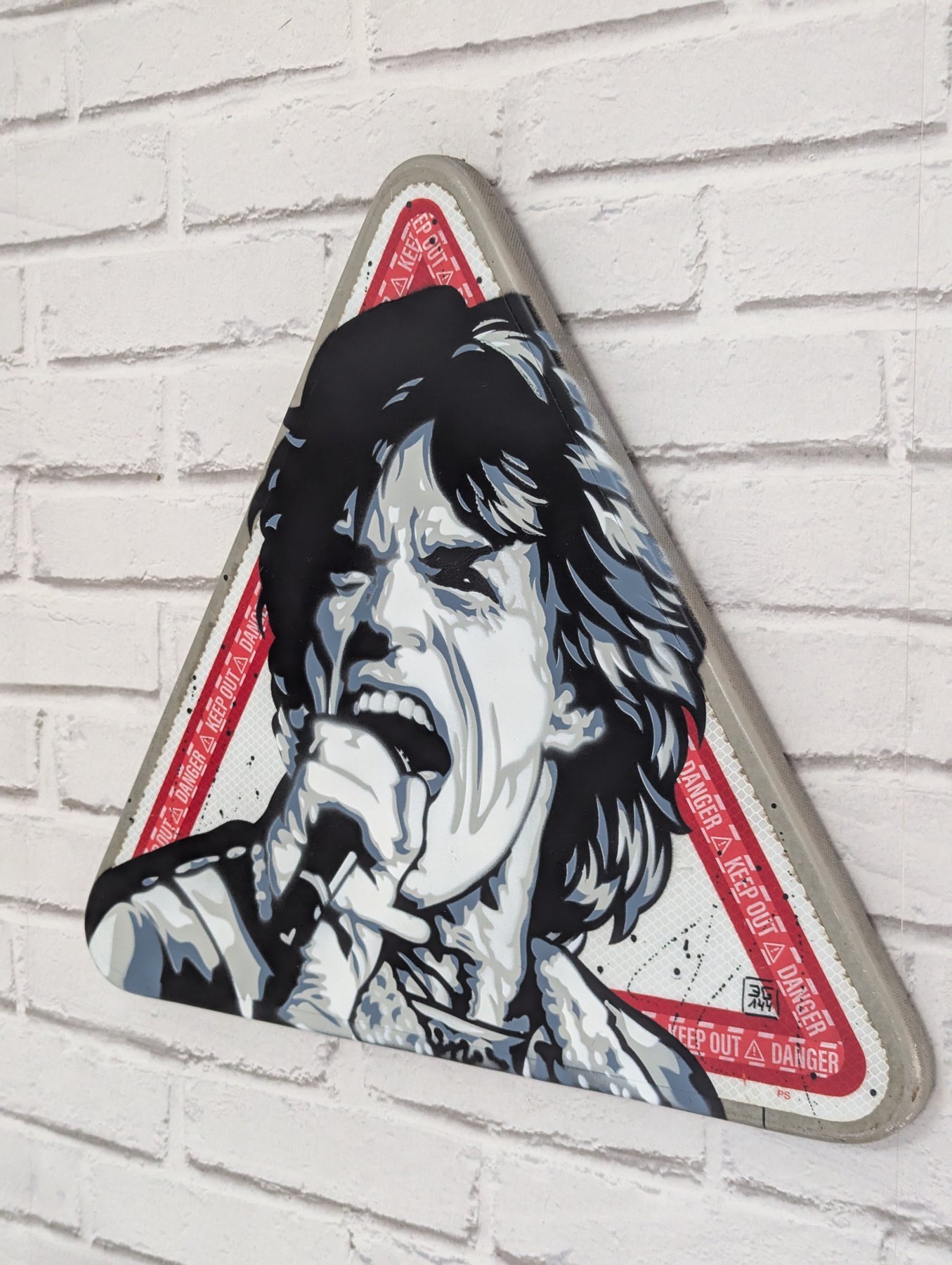 4 Color Stencil Spraypaint auf französischem Verkehrschild, geklaut in Paris.